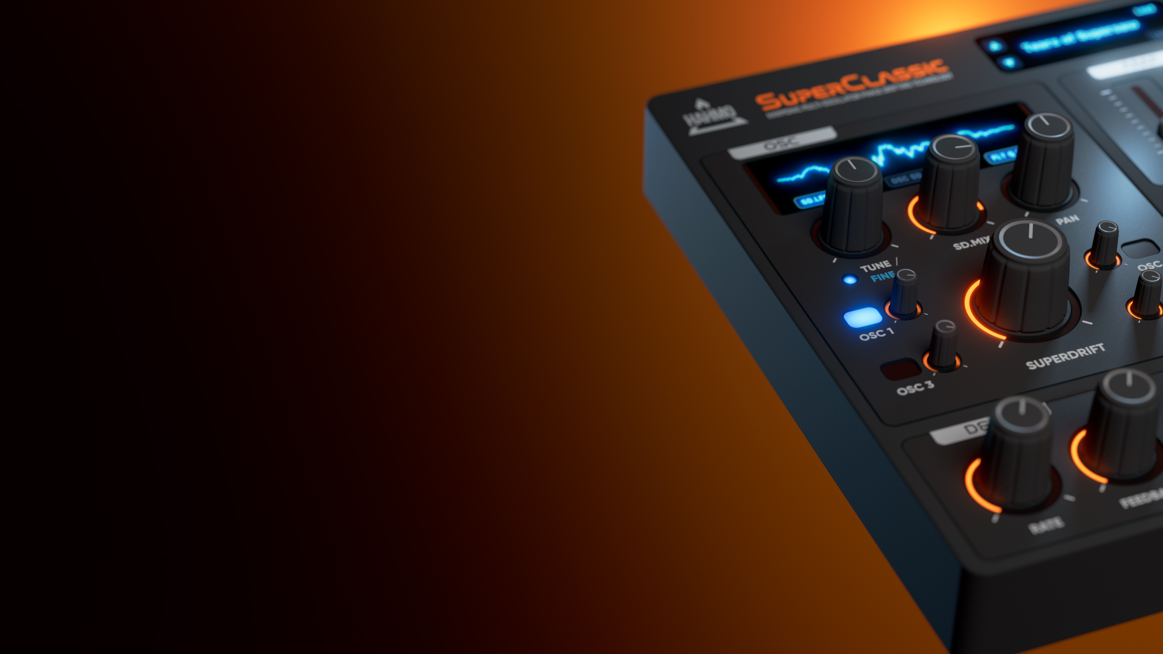 +SuperClassic is a focused but powerful synthesizer plugin and while inspired by the legendary Roland JP-8000 Supersaw oscillator, it has some special features that are unique to SuperClassic. It lets you stack up to four Supersaw oscillators in unison for huge, larger-than-life stereo leads and pads. One of the key elements in JP-8000's Supersaw was the keytracking high-pass filter - SuperClassic allow you to adjust that filter now for more precise control. One of the key features however is the SuperDrift algorithm that modulates each osillators' phase separately for maximum width and warmth.